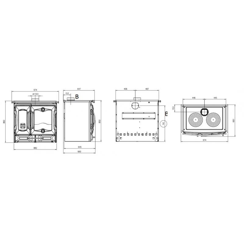 - Diamètre des sorties des fumées : 150 mm