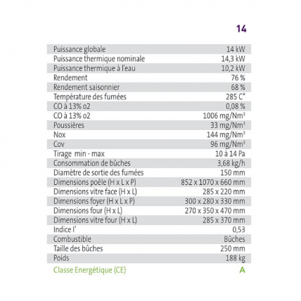 Puissance thermique (à puissance nominale)14,3 kW
