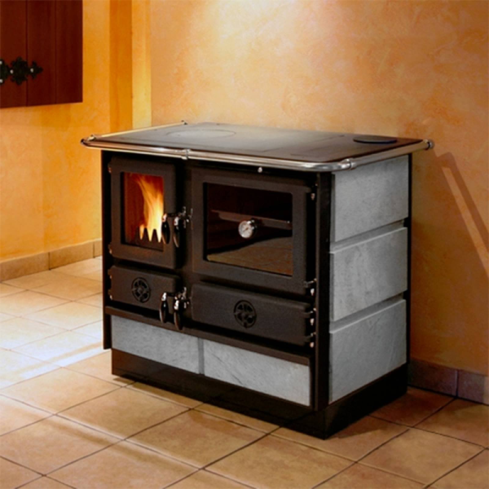 Cette cuisinière à bois dispose d’une puissance nominale de 20kW. Grâce à un rendement très élevé (89%), votre consommation de bois sera réduite et vous permettra ainsi de réaliser des économies d’énergie. Composée de plus de 70% de fonte, cette cuisinière robuste accumulera la chaleur pour la diffuser pendant de longues heures après extinction.