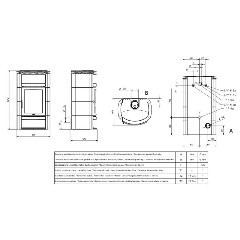 Schéma explicatif du Thermo poêle à bois – LA NORDICA Norma S Idro DSA 19.5 kW