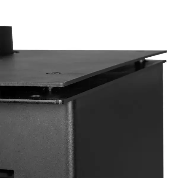 Le poêle à bois Bruno Vito est l’appareil de chauffage idéal pour les amateurs d’esthétique minimaliste. Il est fabriqué en acier noir mat, la poignée de porte en acier inoxydable crée un joli contraste visuel. Un autre point de mire et protection contre la chute des bûches est la grille de protection située à l’avant. Le tuyau de fumée se raccorde en haut du poêle, le raccord a un diamètre de 150 mm.