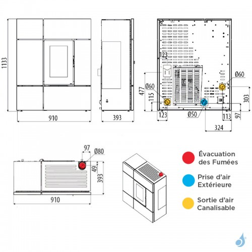 Soyez le premier à commenter “Poêle à granulés canalisable MCZ Stream Comfort Air 12 UP Puissance 11.9kW Sortie Fumée Supérieure”