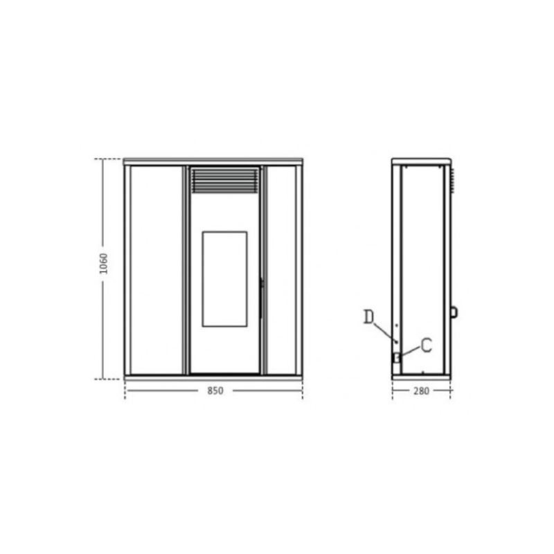 De plus, le Tessa est un poêle extra platde seulement 28cm d’épaisseur.