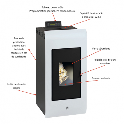 • Écologique : Utilisation de granulés en bois, une source d’énergie renouvelable.