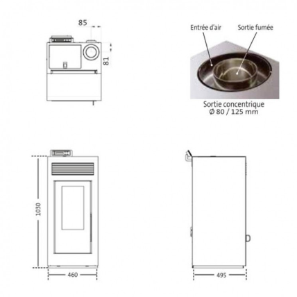 • Diamètre de sortie des fumées : 80 mm